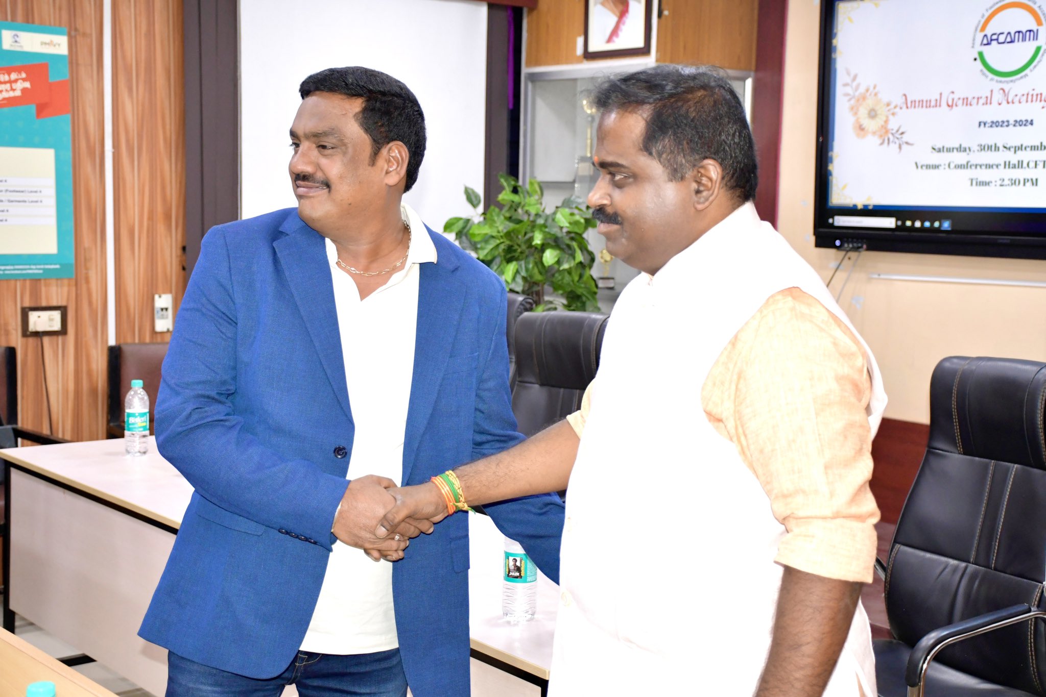 Shri.Murali Director CFTI, Chennai attended as a special invite to the 12th AGM of AFCAMMI conducted at the Permises of CFTI, Chennai and congratulates the New President Shri. A Camalarajan and other officers bearers of the Association.